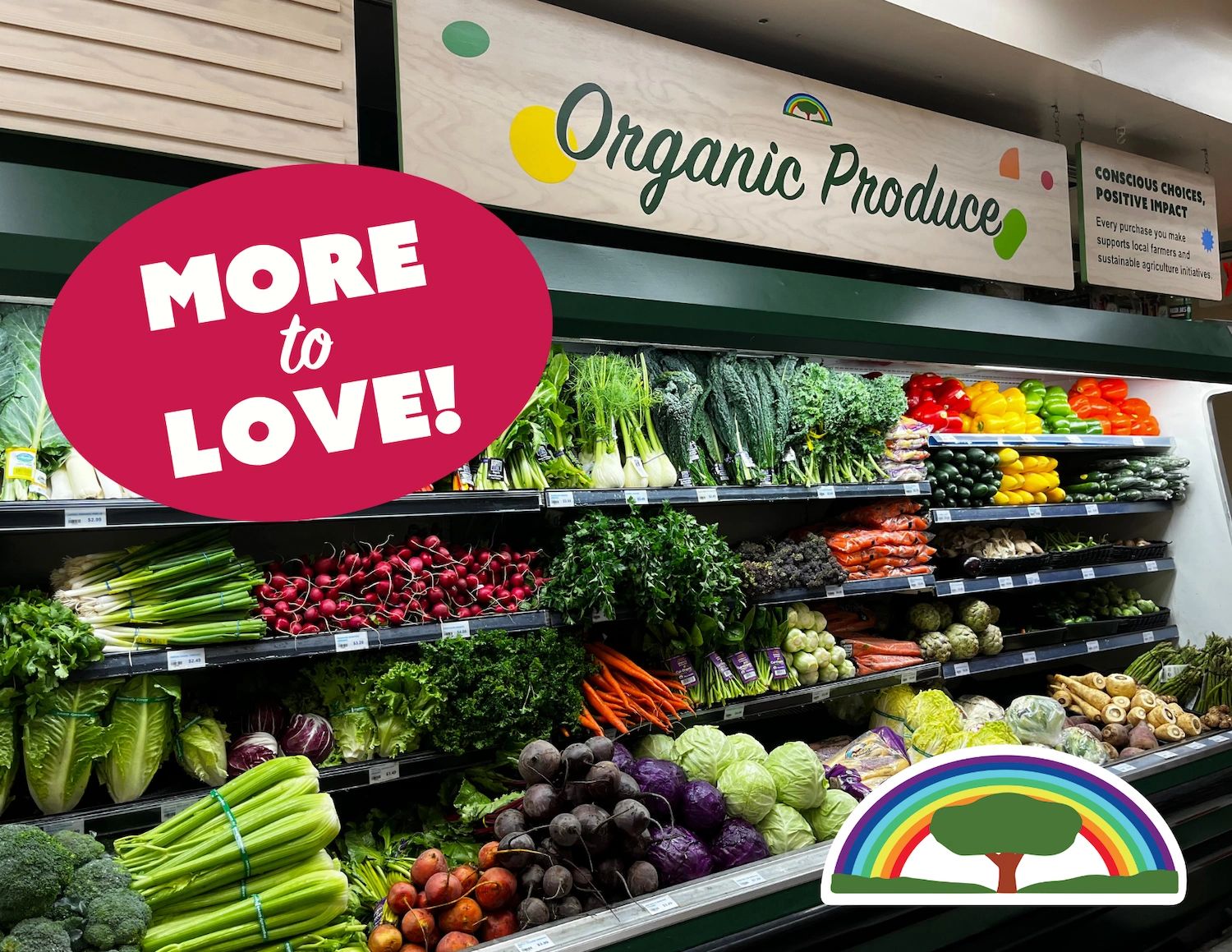 Our produce department is stocked with  99% organic fresh fruits and vegetables every day. From organic whole foods to prepped produce like cubed butternut squash, zucchini noodles,  shredded cabbage for organic coleslaw, and sliced bell peppers , to fresh turmeric and ginger—we make organic easy and affordable.