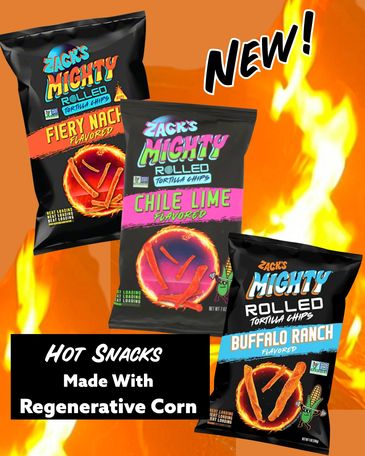 Crunchy rolled tortilla chips made with regenerative corn. Irresistible!